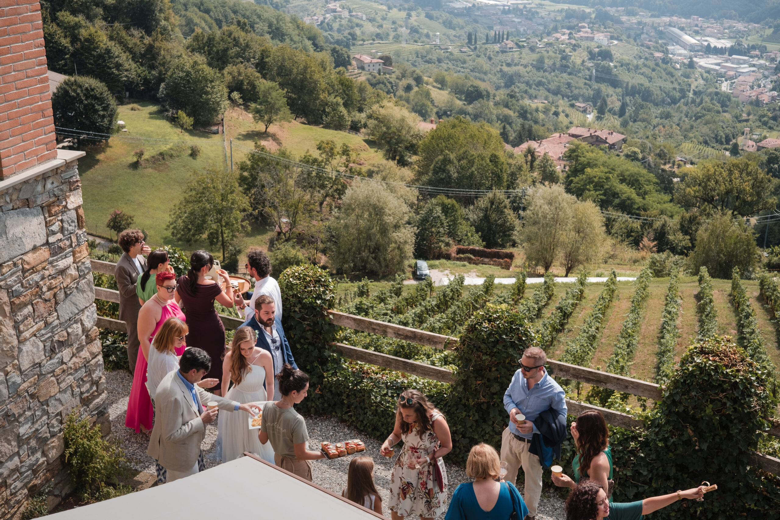 The reception begins with a welcoming aperitif set up in the outdoor spaces overlooking the vineyards and in the panoramic rooms, continuing with the menu of your choice served at the table and, to finish, the wedding cake and dessert buffet. The dishes of your banquet will be accompanied by the organic wines produced by our farm Tosca. The wine and other products from our farm can also be personalized on the label with your chosen graphics to become the perfect gift for your guests.